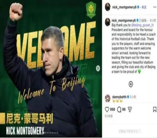 或許正是有了三個得力助手,再加上這段時間對球隊的了解,北京國安新任主帥蒙哥馬利在社交媒體上對新賽季北京國安的成績進行了展望,并且充滿了信心。在社交媒體上,他寫道,“非常感謝國安主席和董事會讓我執(zhí)教這家有著歷史底蘊的俱樂部,讓我倍感榮幸的同時,也感到責任重大。”此外,他還對球員、教練組和球迷表示了感謝,并直言不諱的表示,自己會在新賽季帶領(lǐng)球隊用激情點燃主場,讓球隊成為這座城市的驕傲。