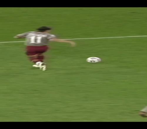 2005-06賽季羅馬德比,塔代伊上半場(chǎng)的進(jìn)球奠定了勝利的基礎(chǔ),對(duì)陣國(guó)際米蘭,他在上半場(chǎng)第9分鐘就打進(jìn)了閃電戰(zhàn),其實(shí)這個(gè)賽季的巴西人有點(diǎn)非典型,他正常在兩個(gè)邊路活躍。