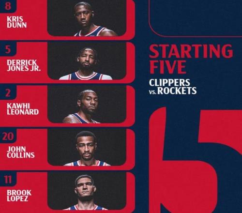 首發(fā)陣容方面,湖人隊(duì)這邊,全員健康,雷迪克教練排出的首發(fā)五人組為:馬庫斯-斯馬特、勒布朗-詹姆斯、德安德烈-艾頓、奧斯汀-里夫斯、盧卡-東契奇;快船這邊,比爾(左臀骨折)賽季報銷、新援加蘭(右腳扭傷)歸期未定、博格丹諾維奇也因傷缺陣,首發(fā)陣容則為:科懷-倫納德、約翰-科林斯、布魯克-洛佩斯、德里克-瓊斯、克里斯-鄧恩。